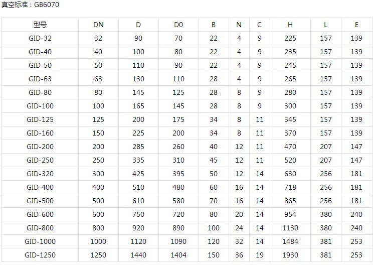 用途和使用范圍: GID系列電動真空蝶閥是在1.3×10-5~3×105Pa的真空系統中用來開啟或隔斷氣流的電動閥門