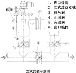 全自動過濾順路應(yīng)水平或垂直安裝,同時應(yīng)注意進(jìn)水方向與外殼箭頭方向應(yīng)一致。(見安裝示意圖)