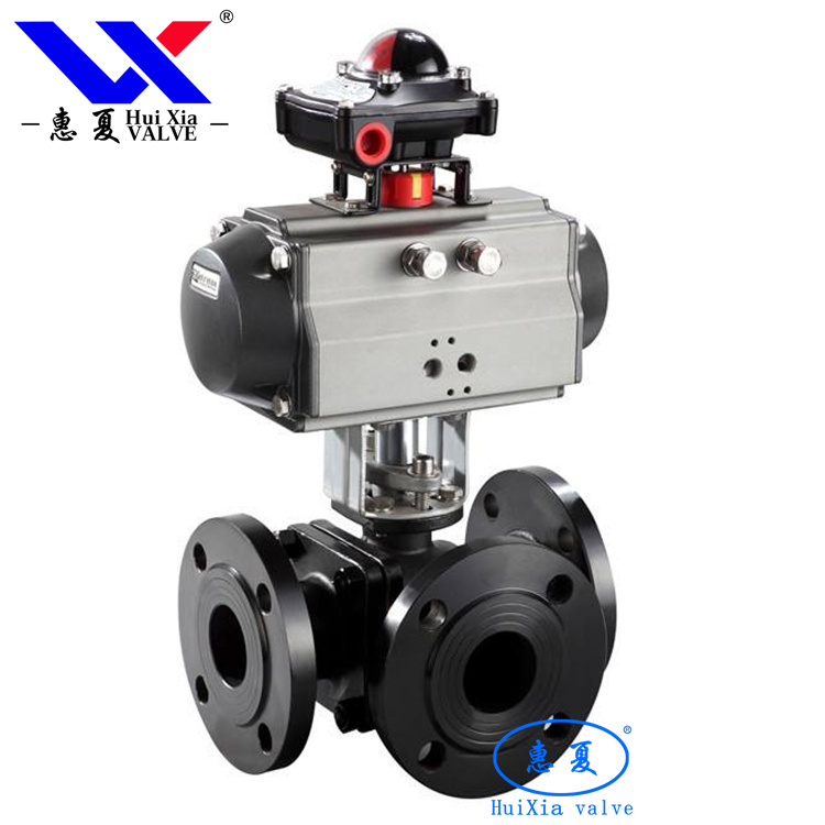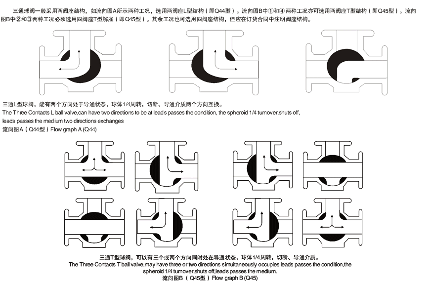 Q644氣動法蘭L型三通球閥用于介質流向的切換,能使相互垂直的兩個通道連通。三通球閥一般采用兩閥座結構,亦可根據用戶要求采用四閥座結構。四閥座密封三通球閥具有造型美觀、結構緊湊合理,它不僅可實現(xiàn)介質流向的切換,也可使三個通道相互連通,同時也可關閉任一通道,使另外兩個通道連通,靈活控制管路中介質的合流或分流。