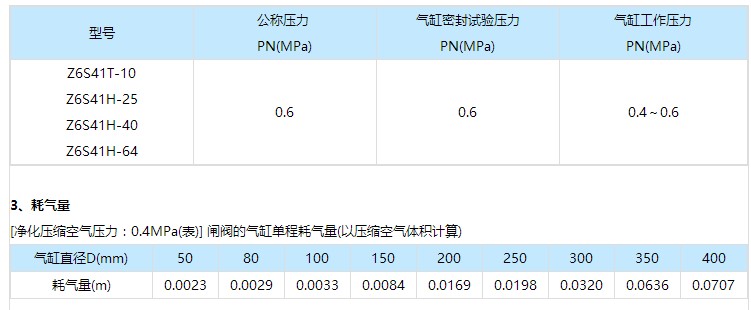 Z6S41H氣動閘閥性能規范