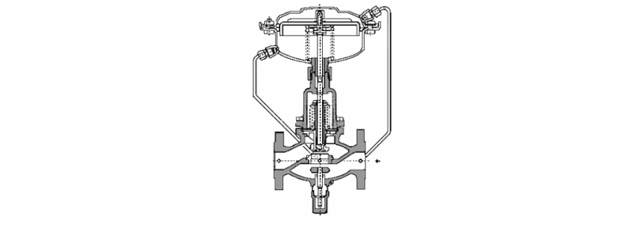 當(dāng)流經(jīng)閥的流量增加時(shí),即△Ps增加,結(jié)果P1、Ps分別作用在上、下膜室,使閥芯向閥座方向移動(dòng),從而改變了閥芯與閥座之間的流通面積,使Ps增加,增加后的Ps作用在膜片上的推力加上彈簧反力與P1作用在膜片上的推力在新的位置產(chǎn)生平衡達(dá)到控制流量的目的。反正,同理。設(shè)定被控介質(zhì)的流量用調(diào)整節(jié)流閥與閥座的相對(duì)位置來(lái)確定。